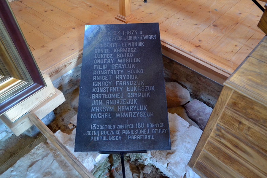 W owym czasie murowany kościół pratulińskl został zabrany na cerkiew gdyż unicki kościół drewniany był obsiany jak makiem kulami żołnierzy, strzelających do unitów. Piszący to, zbierał wiadomość na miejscu, wówczas był dziekanem i delegatem biskupa do Pratulina.