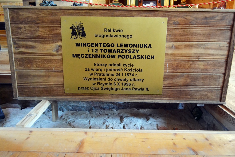 4. Trumna z relikwiami bł. Wincentego Lewoniuka i 12 Towarzyszy znajduje się w pratulińskim kościele parafialnym.