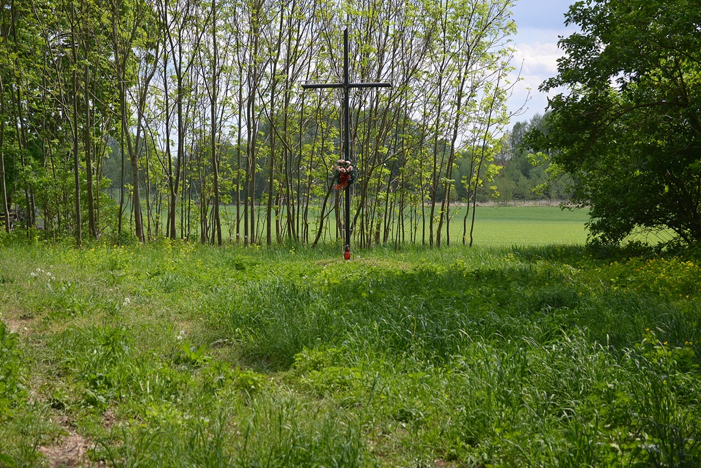 Krzyż w miejscu Kościoła z 1516 roku. Ostatecznie gruntownie zniszczona podczas walk Rosjan z Niemcami w roku 1915.